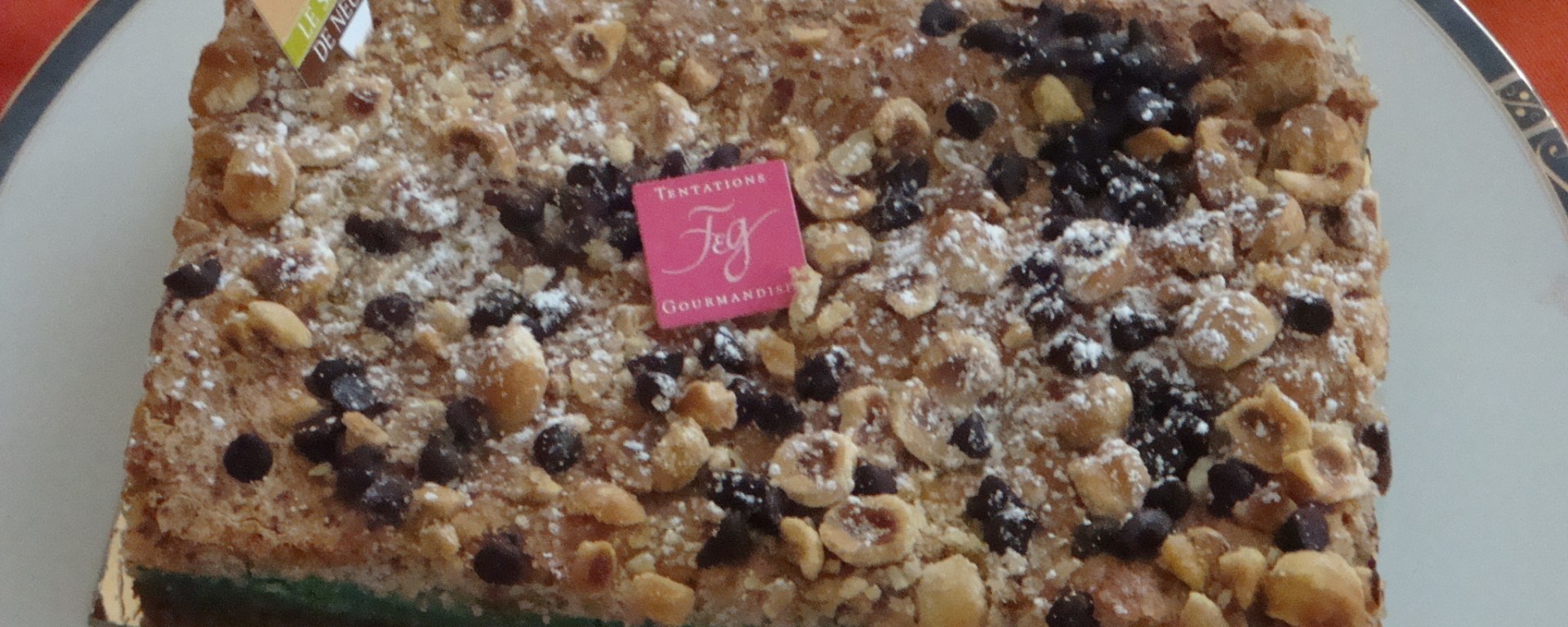 Préalablement munie des adresses où ledit gâteau était disponible, je l’ai trouvé dans une de mes pâtisseries préférées, celle qui fait les superbes chouquettes dont j’avais parlé dans une de mes cartes du Tendre .