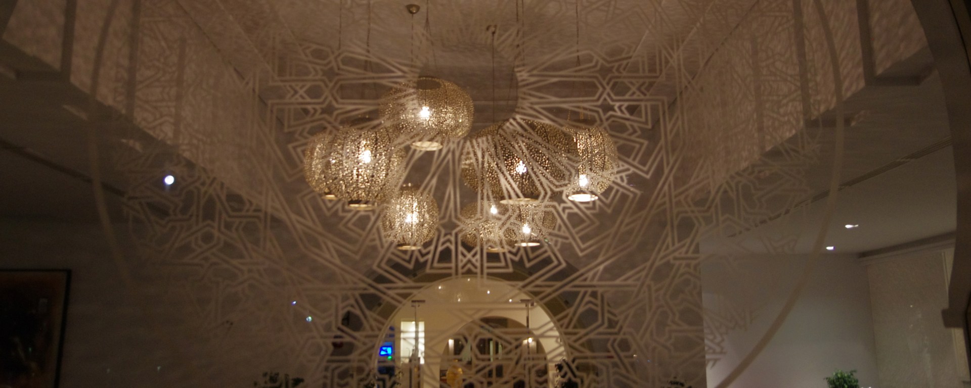L’architecture de ce bâtiment et sa décoration néomauresque donnent une impression d’espace, de tranquillité et de dépaysement. On est loin des hôtels impersonnels de certaines chaînes. Il faut avoir déambulé le soir le long de la piscine fermée pour ressentir cette sérénité dans la pénombre… Une impression d’autant plus forte qu’elle était pour moi l’occasion de fouler les pieds du continent où j’ai grandi et que je n’avais pas revu depuis 2009: l’Afrique, ses odeurs de bougainvilliers, ses marchés ou souks selon qu’on est en Afrique noir ou au Maghreb…Autant de souvenirs qui me revenaient à l’esprit…