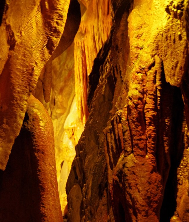 Gouffre à taille humaine, on y découvre des stalactites et un lac souterrain