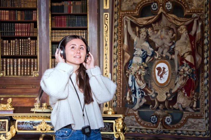 Par ailleurs il m’a amenée à me retourner à plusieurs reprises, croyant que les pas dans les escaliers que j’entendais dans mon casque venaient réellement de la salle… Amateurs de sensations fortes, voyez s’il est possible de le suivre la nuit ; ) Libres à vous ensuite de revenir sur vos pas sans casque pour revoir le château et vous attarder sur une pièce qui vous a plu ou de poursuivre la visite, en costume pour les enfants, dans le château ou dans le parc à pied ou en voiturette!
