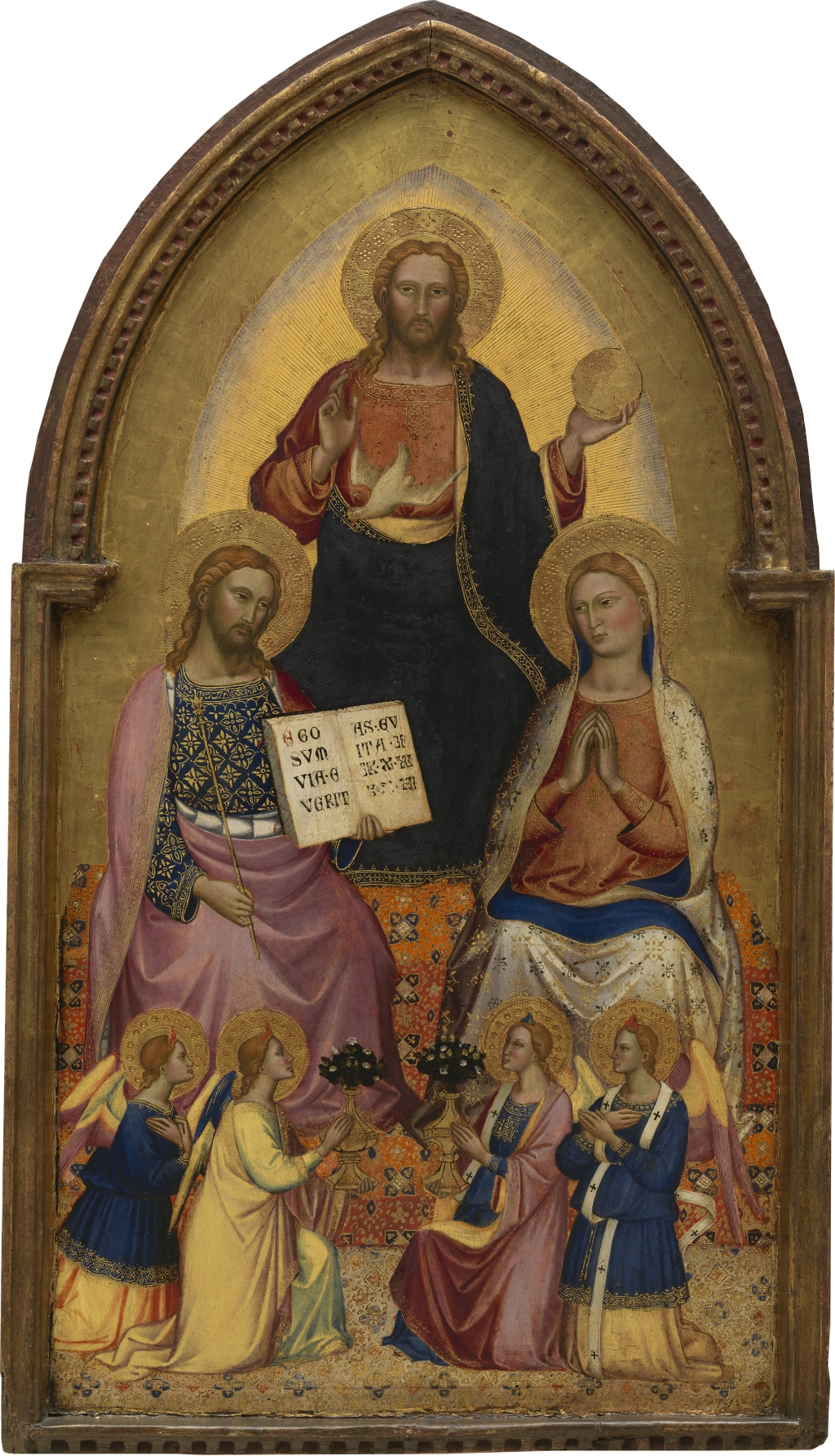 Sur les tableaux à fond d’or, dans la continuité du style gothique, s’expriment déjà les innovations stylistiques propres au Trecento et au Quattrocento : le travail subtil de l’or, le raffinement des détails et l’attention nouvelle portée aux figures, tant dans leur physionomie que leurs postures. L’intérêt pour l’intégration d’éléments architecturaux et l’expérimentation de nouvelles représentations de l’espace sont visibles dès la première salle ainsi que la volonté de retrouver, par la peinture, une relation plus directe avec Dieu.