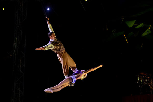 Il n’est plus question de rechercher les différents éléments comme dans Icare et Pégase mais de se recentrer sur la marque de fabrique de la compagnie: les numéros équestres et de voltige, avec notamment le magnifique et sensuel duo aérien qui reprend celui de la deuxième partie du spectacle de l’an dernier.