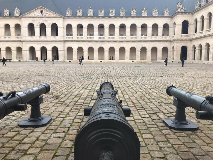 Lorsque l’on s’approche des Invalides, il est difficile de s’imaginer ce qu’était la plaine de Grenelle, sur laquelle Louis XIV décida de faire bâtir le premier hôpital militaire en 1670. Il s’agissait d’une plaine marécageuse, peu adaptée à l’agriculture, presque inutile pour l’époque. La proximité de la Seine permet l’acheminement aisé et rapide depuis les carrières, et l’édification rapide d’un bâtiment solennel et moderne. En 1674, les premiers invalides, blessés et mutilés de guerre, s’y installent. Aujourd’hui, il s’agit toujours d’un lieu dédié aux soins et à la solidarité, mais aussi à la mémoire et au patrimoine : en plus d’un hôpital, de la cathédrale, les bâtiments abritent 3 musées (celui des plans et reliefs, celui de l’Armée et enfin celui de l’Ordre de la libération) et enfin une nécropole militaire.
