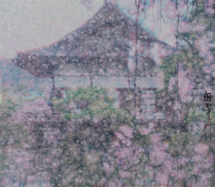 En y appliquant le lavis de façon successive, YANG Ermin crée une sensation de « peinture usée », à la fois poétique et nostalgique. L’exposition, en s’ouvrant par une grande toile résumant 30 ans de création nous emmène dans une rétrospective où paysages chinois, natures mortes et églises française (Notre Dame de Paris) apparaissent comme ses thèmes de prédilection.