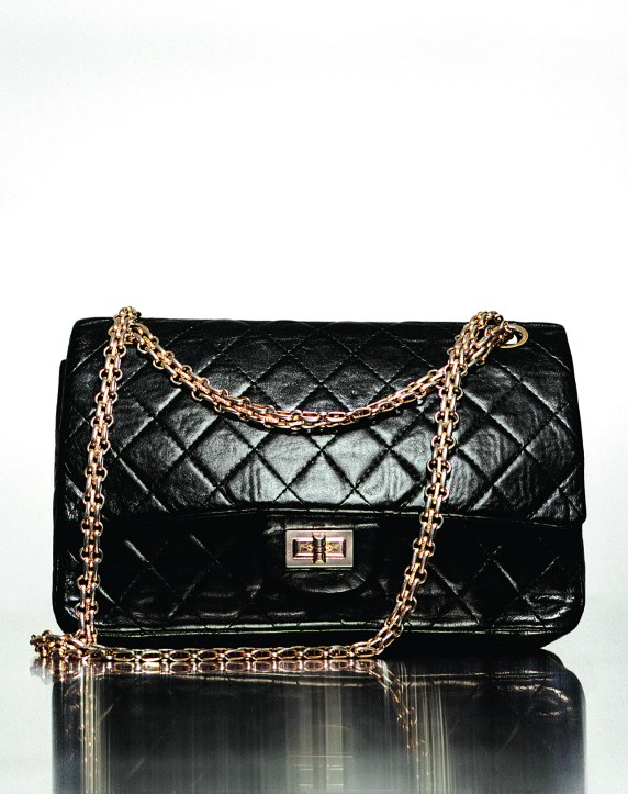 Agneau teint en noir matelassé, métal doré, fermoir à tourniquet