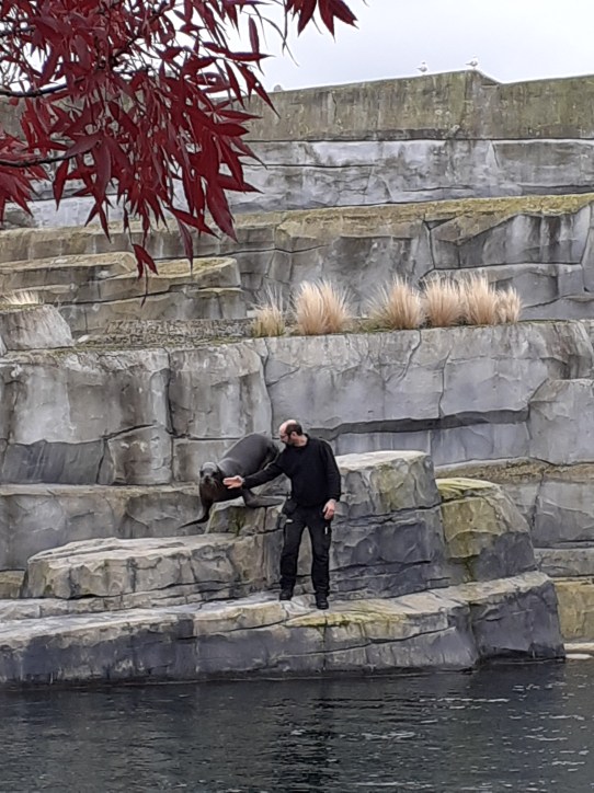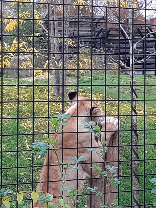 Si vous voulez plutôt profiter du parc avec sa végétation parée aux couleurs de l’automne, je vous conseille de venir comme je l’ai fait vers 14h30. J’ai ainsi pu regarder une animation autour des otaries Ella, Portos et Quito qui ont gratifié les visiteurs de beaux plongeons, grognements sonores et moments de complicité avec les soigneurs, avant de découvrir le nourrissage des lionnes: des morceaux de viande sont disposés sur des arbres ou des troncs, ce qui donne lieu à une véritable chasse à la nourriture. Si le bébé puma, né cet été, n’était pas visible, j’ai pu revoir les jaguar et panthère noire tachetée, ainsi qu’un des lynx guettant à l’horizon.