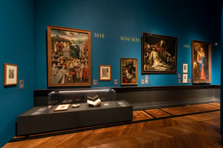 Autant le dire d’emblée, j’y allais un peu perplexe car ne suis pas une adepte de peinture religieuse au sens strict : j’aime les Pieta italiennes, notamment de Michel-Ange, les peintures de Cranach ou du Caravage… mais la peinture religieuse sans la « patte » d’un artiste me laisse parfois songeuse. Quelle ne fut donc pas ma surprise de découvrir, dans une scénographie d’un bleu soutenu reprenant l’architecture d’une cathédrale, une exposition d’une très grande beauté avec de véritables chefs d’œuvre…