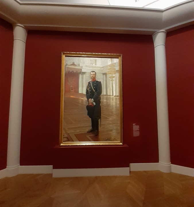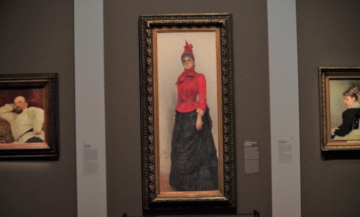 Ilya Répine est par ailleurs un des portraitistes les plus connus de son temps, malgré un réalisme sans concession. Si les portraits de ses enfants ont un côté charmant et rappelle la peinture française, ceux du Tsar Ivan le Terrible ou de la Tsarevna Sofia Alexeïevna montrent toute la fureur et la stupeur des protagonistes. Par l’usage de son clair obscur et sa désacralisation de la famille impériale il m’a rappelé Le Caravage, notamment lorsque ce-dernier prend pour modèle une prostituée pour peindre la mort de la Vierge Marie. Chez Répine la Tsarevna pourrait être n’importe quelle femme furieuse, l’apparat disparait au profit des sentiments. « Peindre l’âme russe » implique également un choix des œuvres davantage axé sur les portraits que sur la nature, ce qui peut décevoir la communauté russophone amatrice de celle-ci (remarque de Monsieur: « où sont les paysages de Répine »).