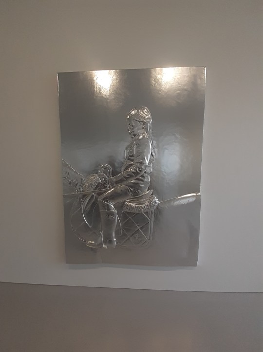 Le bas relief Girl on pony (2015) reprend un thème très développé dans l’histoire de l’art – une personne à cheval – en insistant davantage sur le tapis de selle et les bottes de la cavalière, que sur le cheval, qui fait l’objet d’une ellipse.