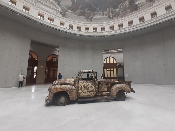 En complément de l’exposition dédiée à Charles Ray au Centre Pompidou, la Bourse de Commerce Collection Pinault montre les dernières œuvres de cet artiste américain sur plusieurs niveaux. Si je reste hermétique à son œuvre, j’ai pu apprécier la façon de présenter les sculptures sans piédestal, directement à notre vue et une réflexion désenchantée sur notre temps. Les œuvres de la Bourse de commerce – Collection Pinault mettent par ailleurs moins mal à l’aise que celles du Centre Pompidou, impression due en partie à une scénographie et un lieu d’exposition bien plus aérés.
