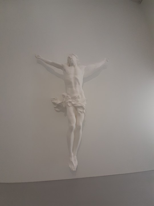 Study after Algardi (2021), s’inspire d’une statuette baroque. Bras écartés mais libérée de la présence de la croix, la silhouette du Christ flotte dans une extase dépourvue de spiritualité. Une approche surprenante d’une des figures les plus marquantes en histoire de l’art occidental – le Christ en croix …