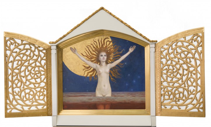 On retrouve également dans l’œuvre de Gallen-Kallela un certain goût pour l’ésotérisme qui m’a fait penser à Mucha. Le tableau de l’orante, Ad Astra, cette jeune fille nue aux cheveux roux portant les stigmates du Christ dans le cosmos semble venir d’un autre monde et renvoie davantage au panthéisme qu’au protestantisme finlandais.