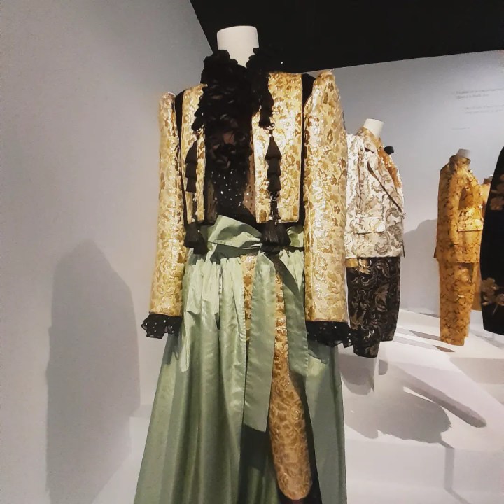 C’est une exposition dont on sort le sourire aux lèvres. Pour fêter les 60 ans de la première collection Yves Saint Laurent sous son propre nom, et ses 5 années d’existence, le musée Yves Saint Laurent Paris revêt ses habits de fête avec l’exposition anniversaire GOLD, Les ors d’Yves Saint Laurent. A travers une sélection d’une quarantaine de robes haute couture et prêt-à-porter, des accessoires et des vitrines composées entièrement de bijoux, la silhouette Yves Saint Laurent se dessine.