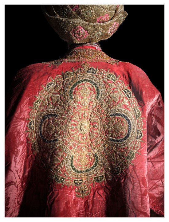 L’exposition « Sur les routes de Samarcande, merveilles de soie et d’or » permet de découvrir les différents styles de vêtements: le style butador vient de l’amande, signe de longévité; le style Dokor consiste en des broderies uniquement sur les bordures.